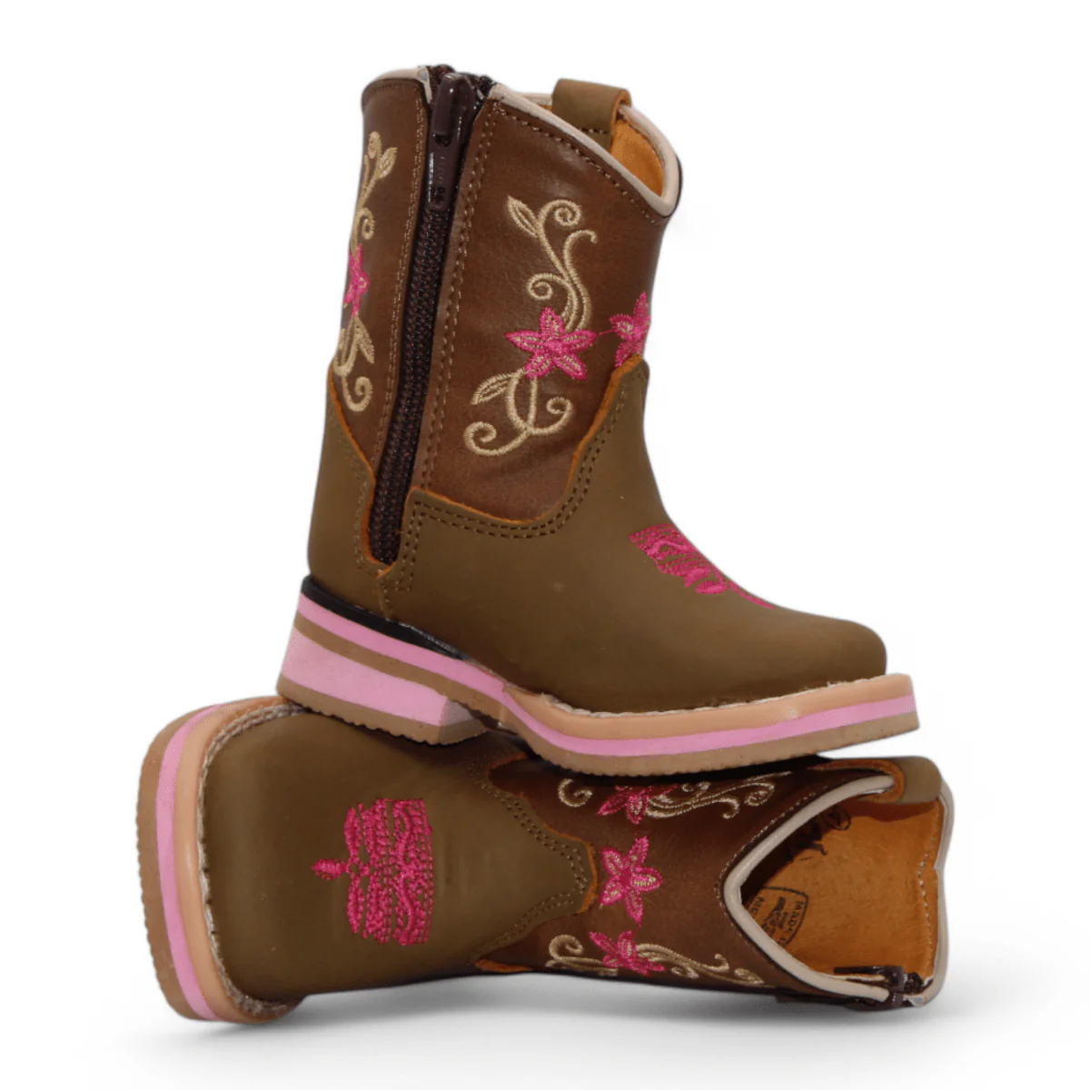 Baby Girl’s Genuine Leather Square Toe Boots – Tan