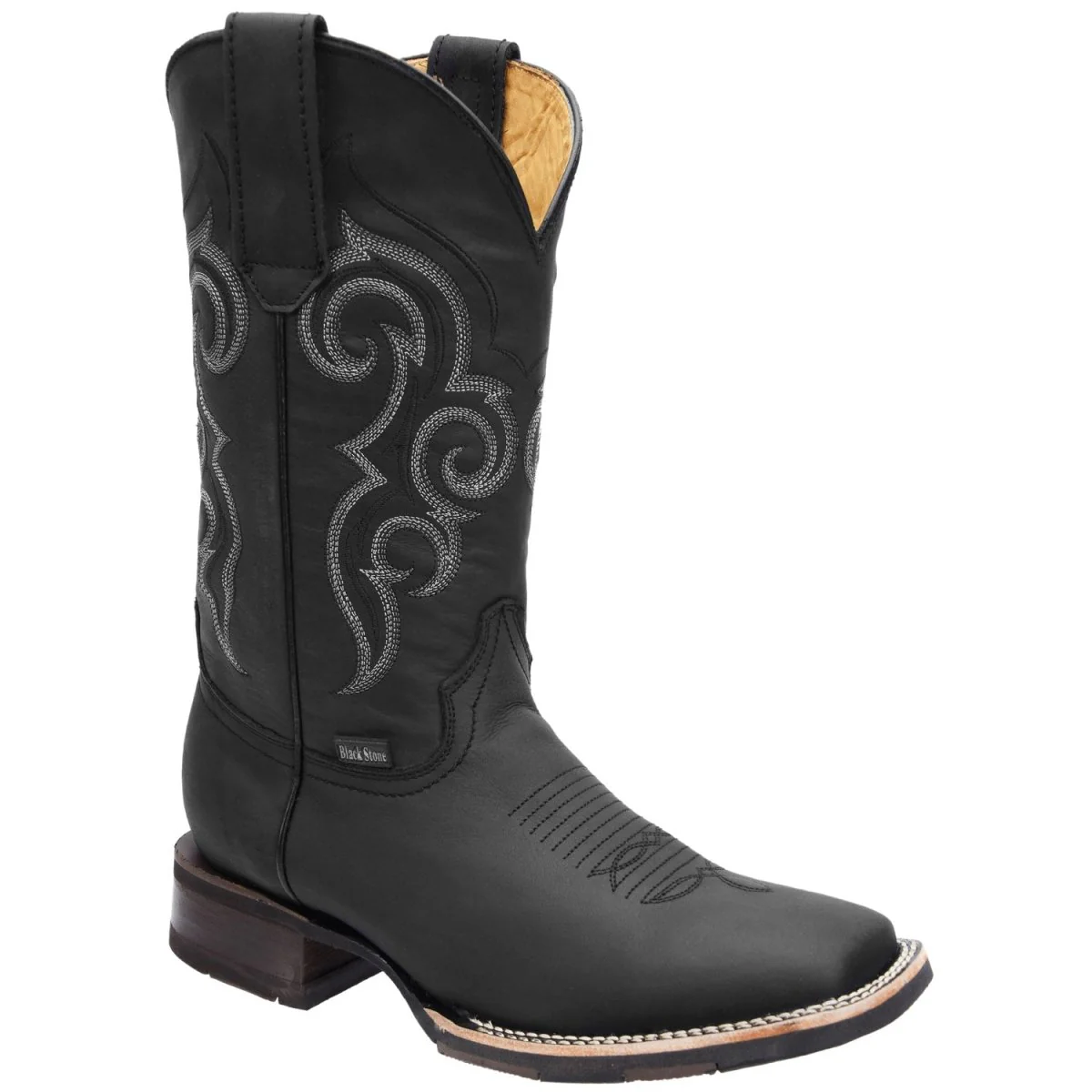 Bota para Hombre Cuadrade de Piel Original en color Negro- Rodeo Imports