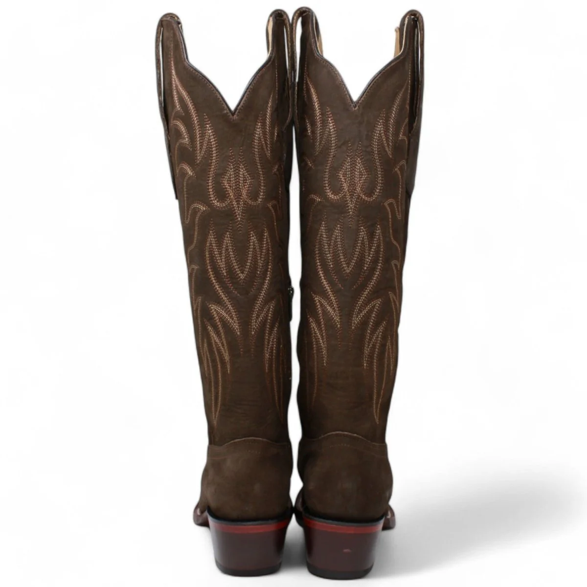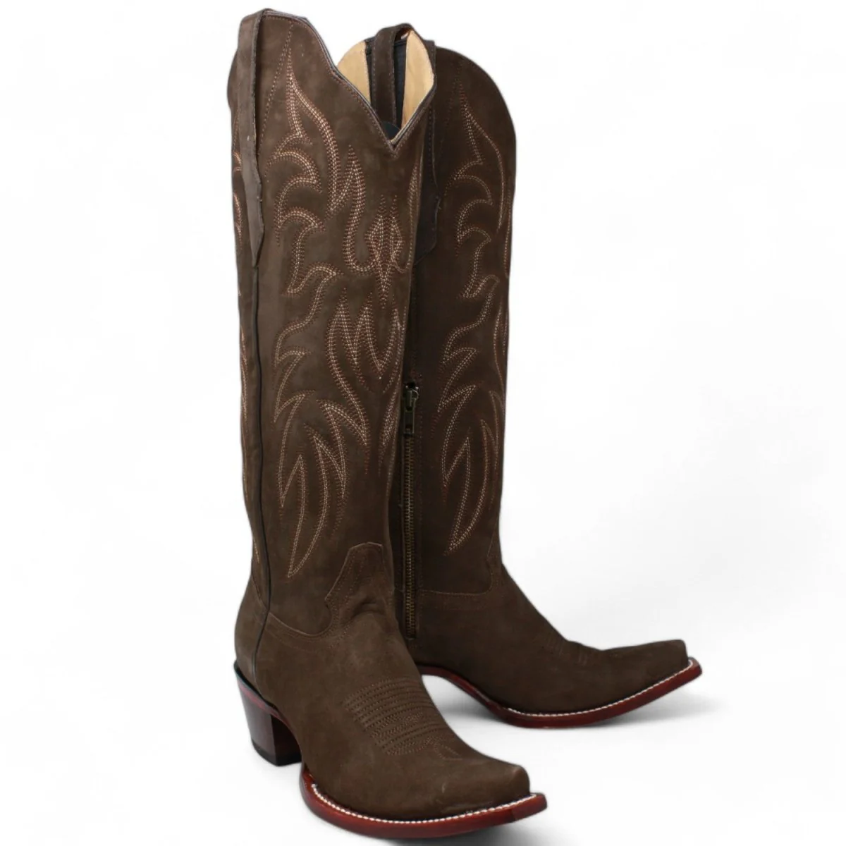 Botas Altas de Gamuza Punta Recortada Para Dama Color Tabaco – Wild West Boots