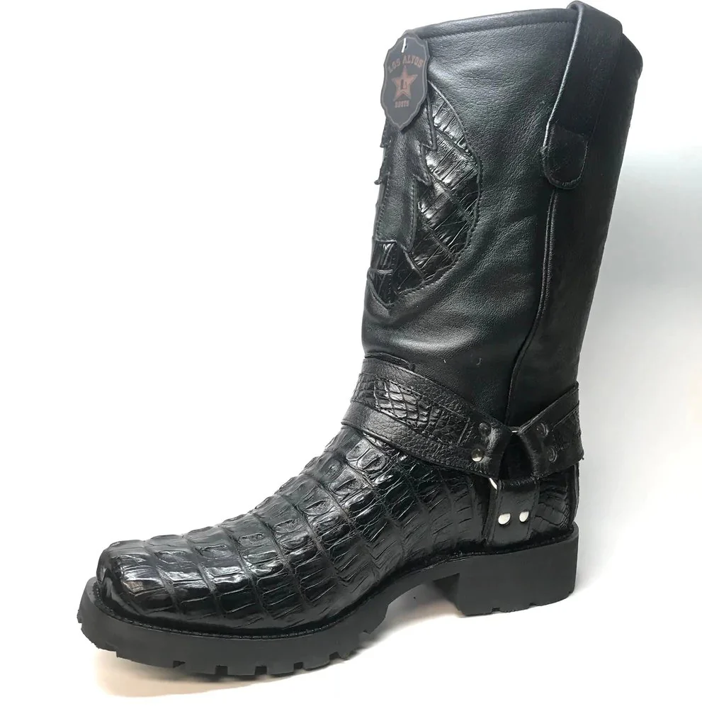 Botas Biker de Cocodrilo Caiman Cola Original Color Negro – Los Altos Boots