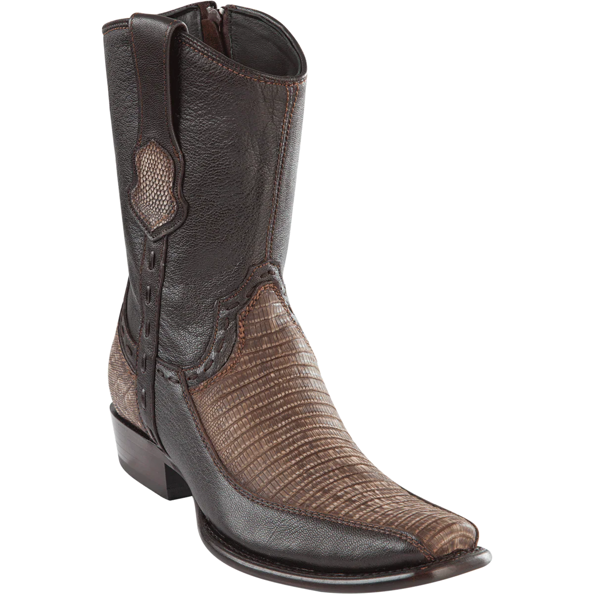 Botas Cortas de Armadillo con Venado Original Punta Dubai Color Cafe Lijado