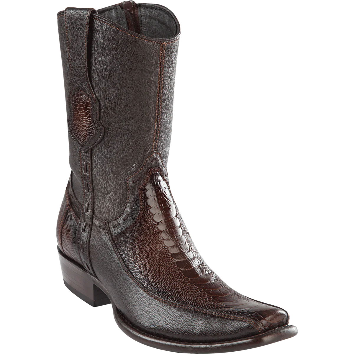 Botas Cortas de Avestruz Pata con Venado Original Punta Dubai Color Cafe Difuminado