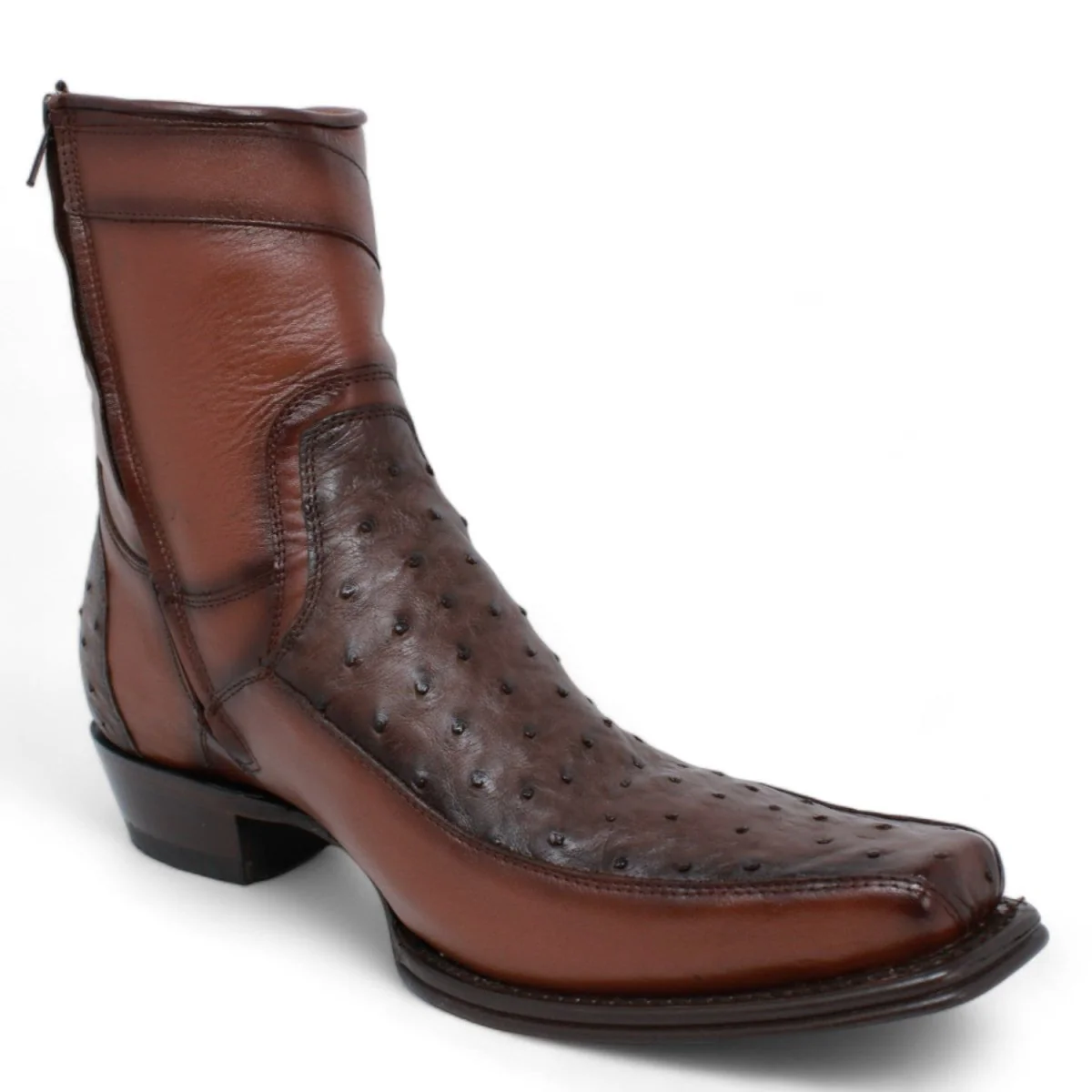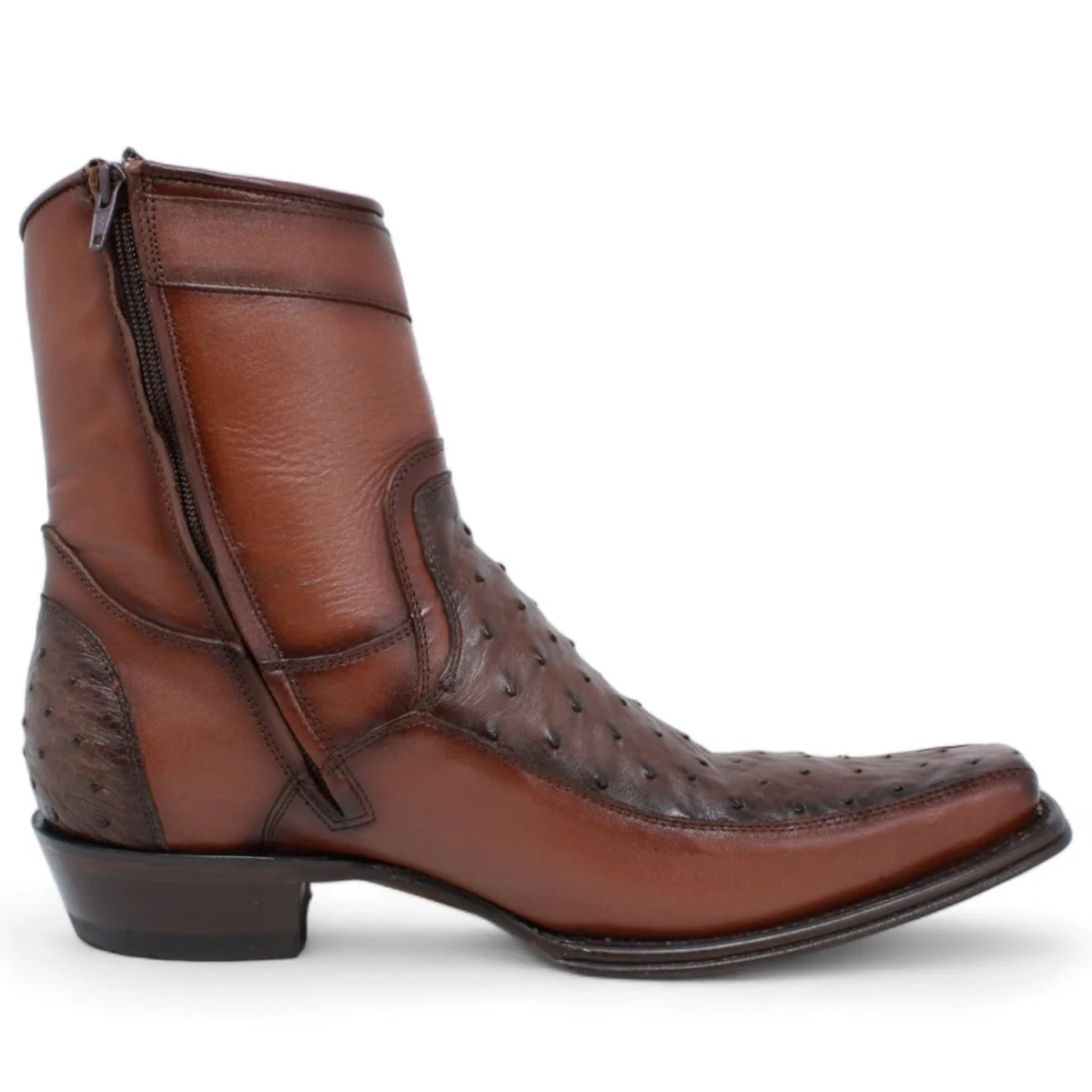 Botas Cortas de Avestruz y Venado Originla Punta Europea Color Negro.