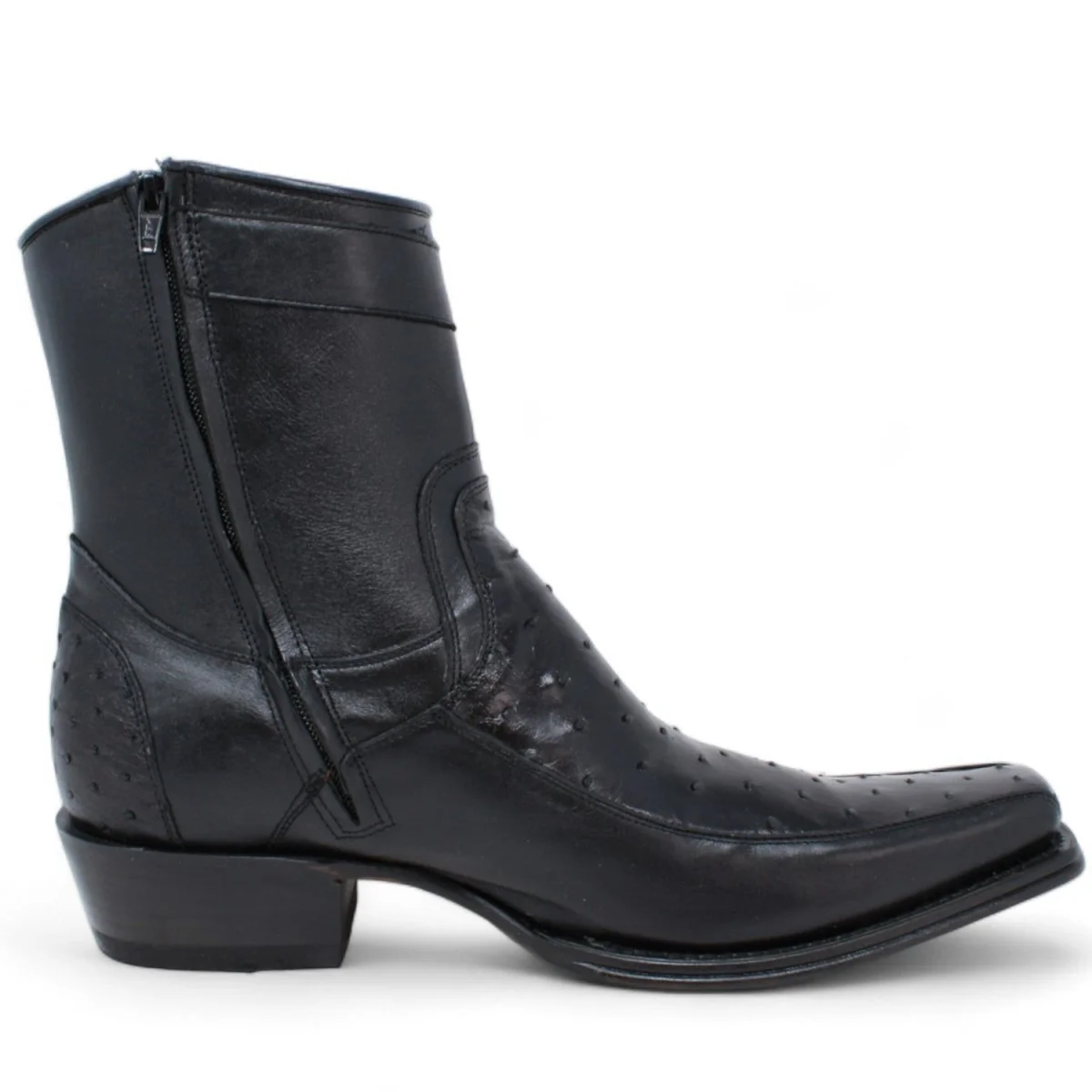 Botas Cortas de Avestruz y Venado Original Punta Europea Color Negro – Wild West Boots