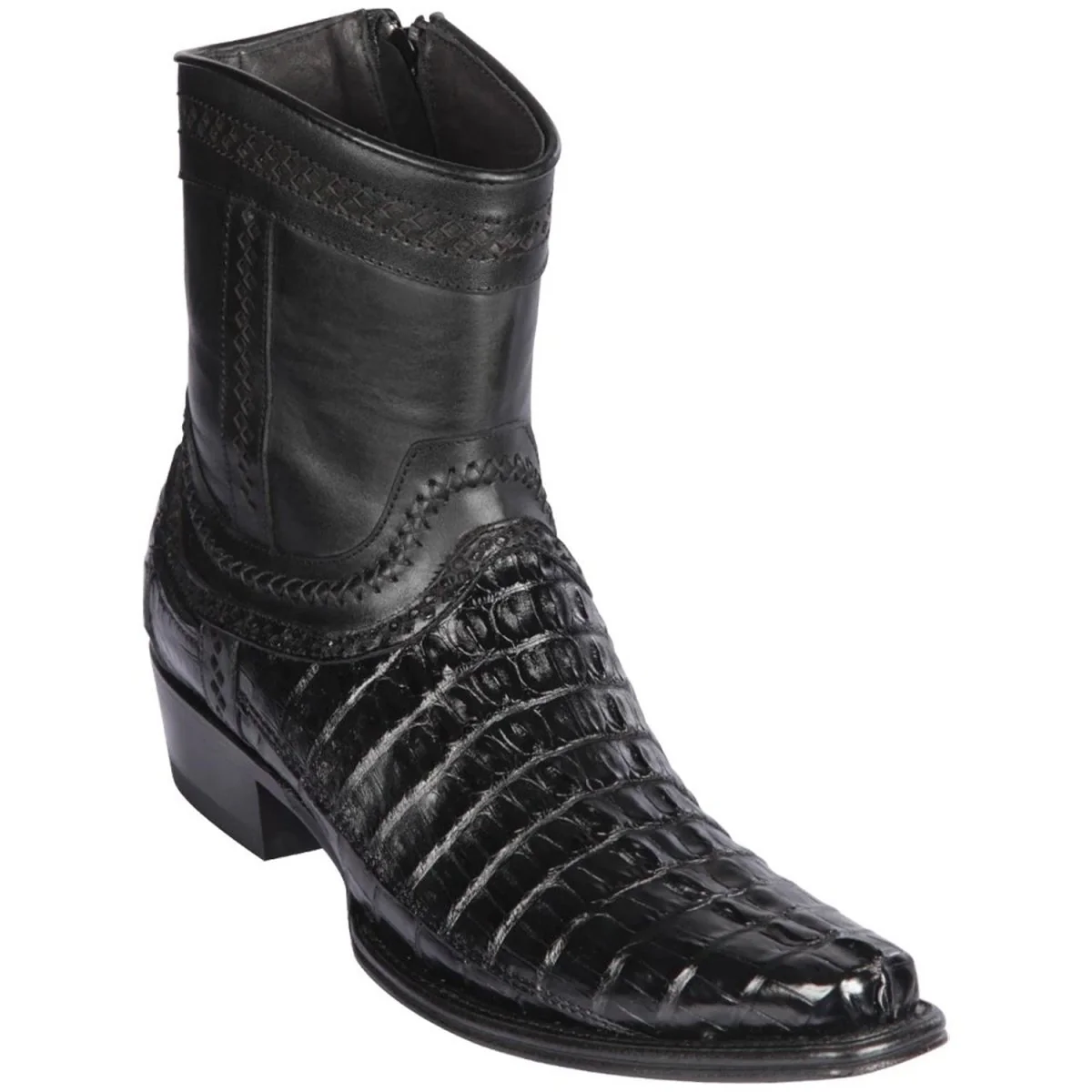 Botas Cortas de Cocodrilo Caiman Cola Original Punta Europea Color Negro