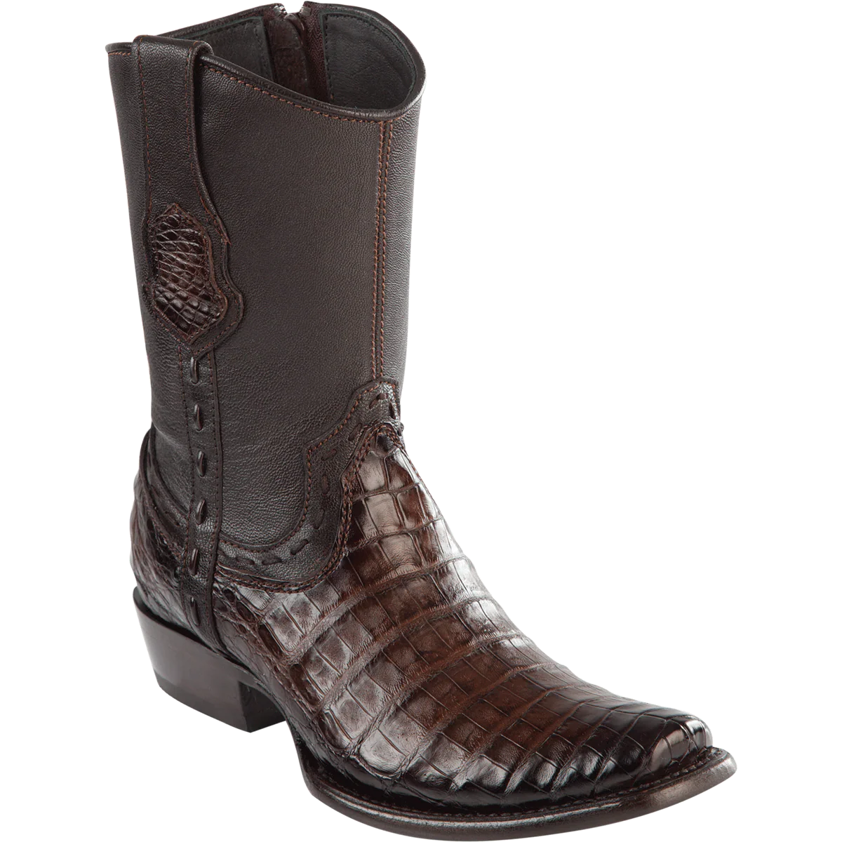 Botas Cortas de Cocodrilo Caiman Panza Original Punta Dubai Cuadrada Color Cafe Difuminado