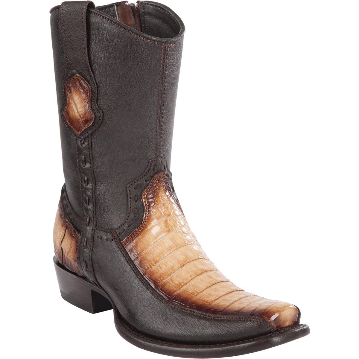 Botas Cortas de Cocodrilo Caiman Panza y Venado Original Punta Dubai Cuadrada Color Arena Difuminado – Wild West Boots
