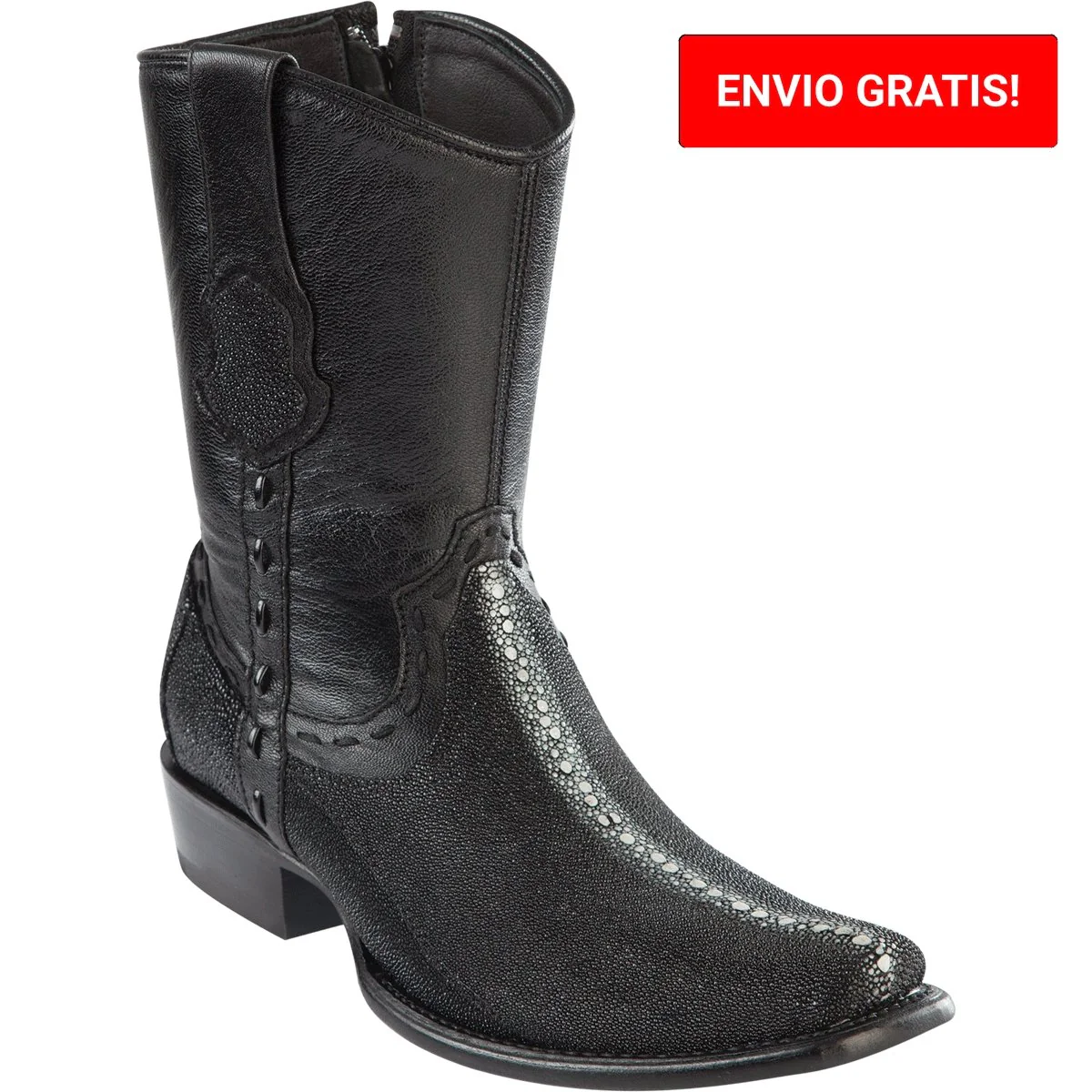 Botas Cortas de Mantarraya Original Perla Completa Punta Dubai Cuadrada Color Negro