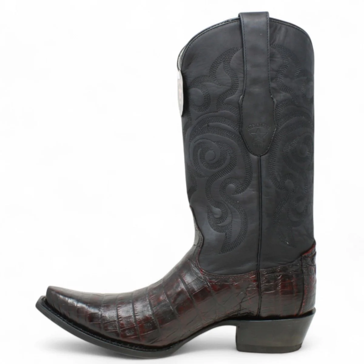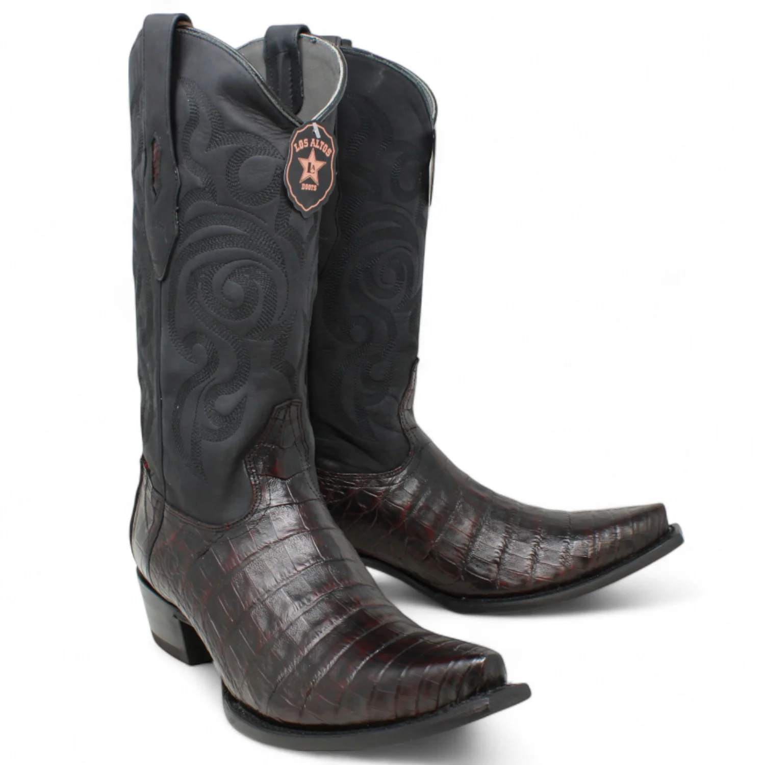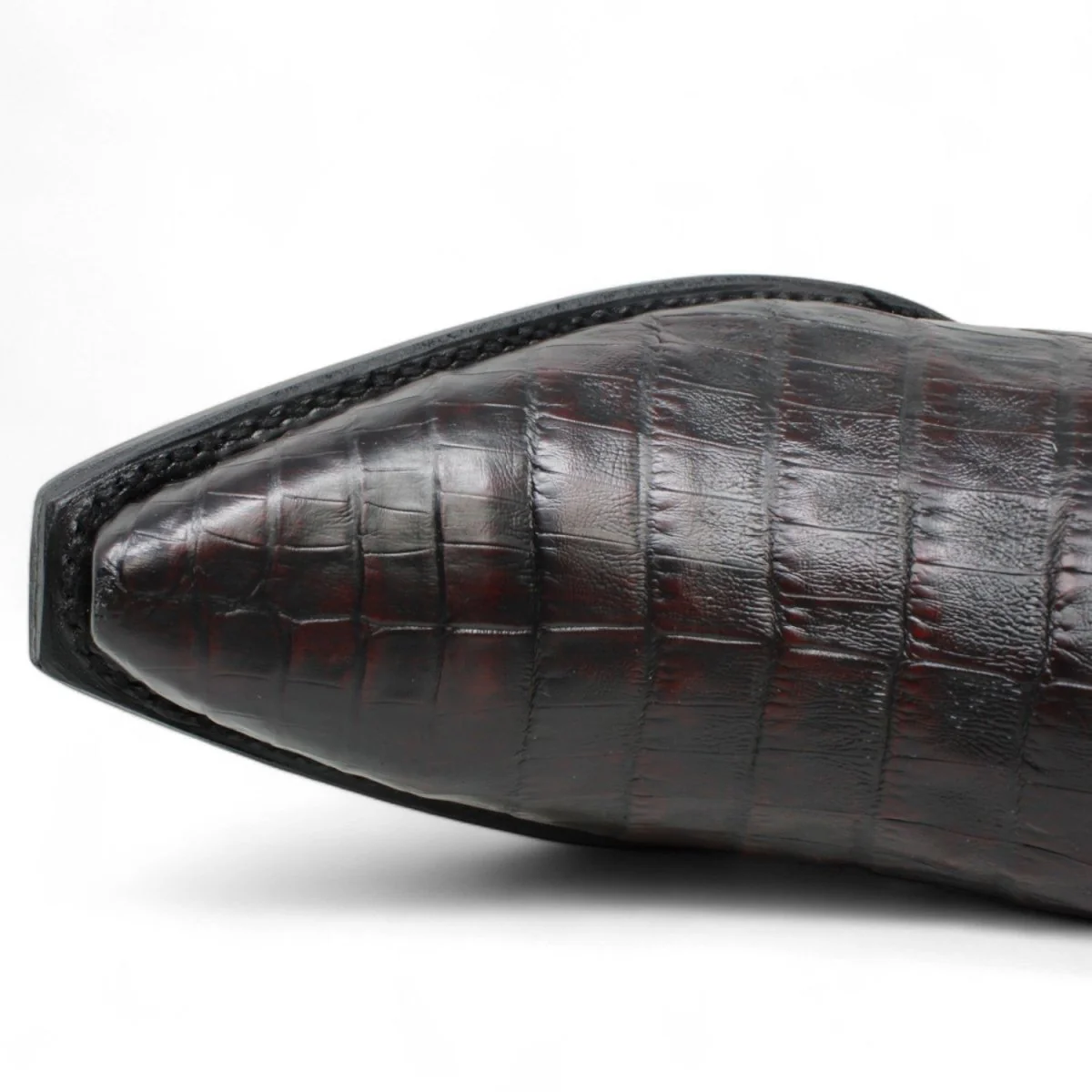 Botas de Cocodrilo Caiman Panza Original Punta Recortada Color Negro Rojizo