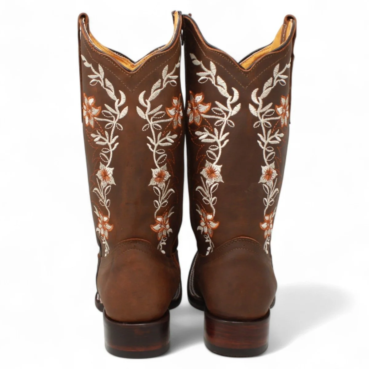 Botas Vaqueras para Mujer en Piel de Res Crazy con Bordado Floral – Color Tan – La Carreta