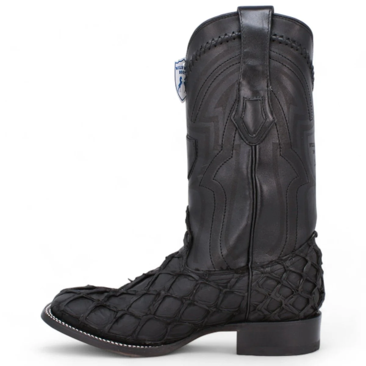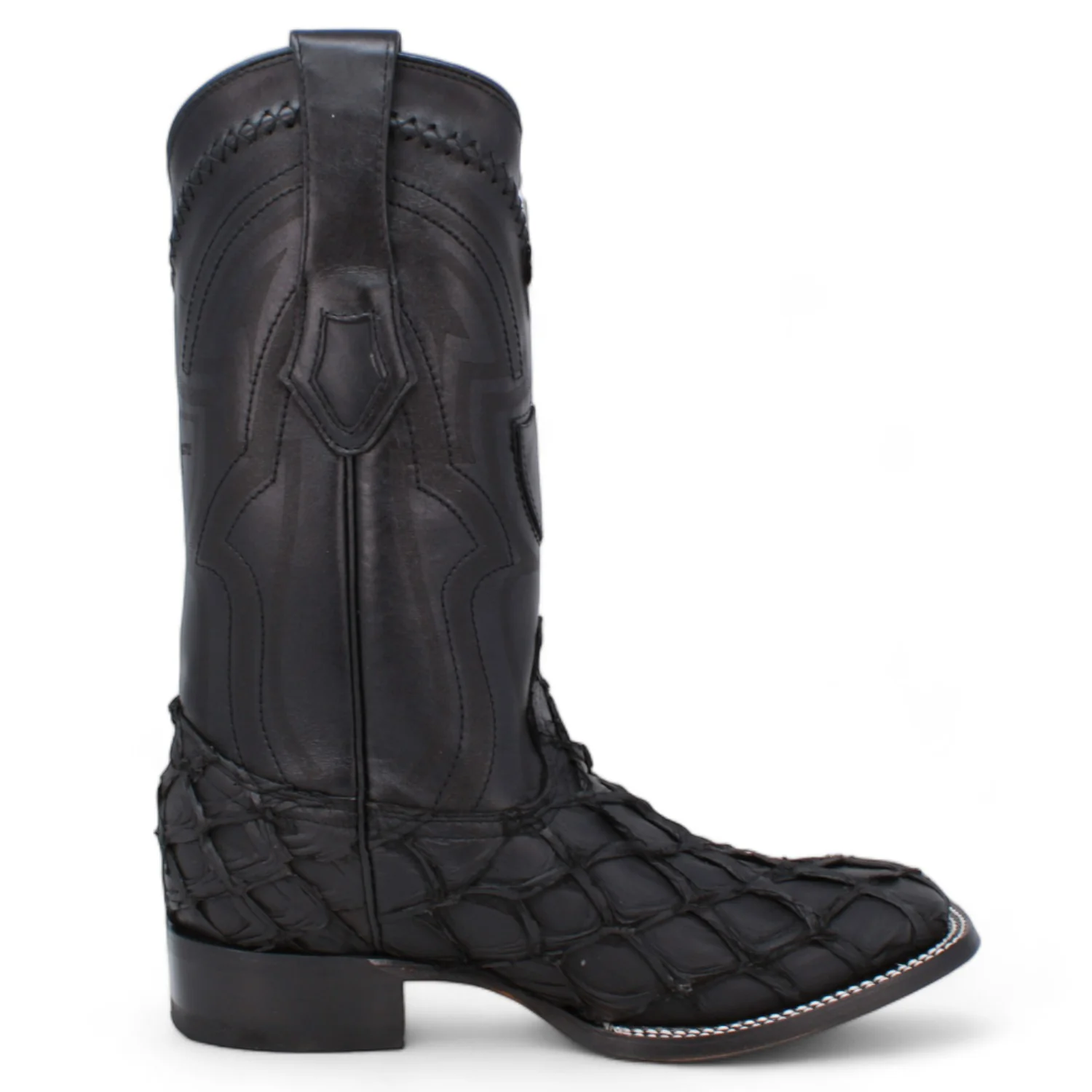 Botas de Pescado Pirarucu Original Punta Cuadrada Ancha Color Negro Mate