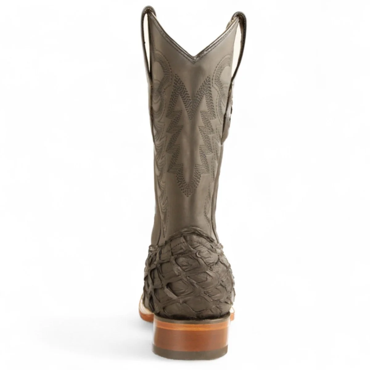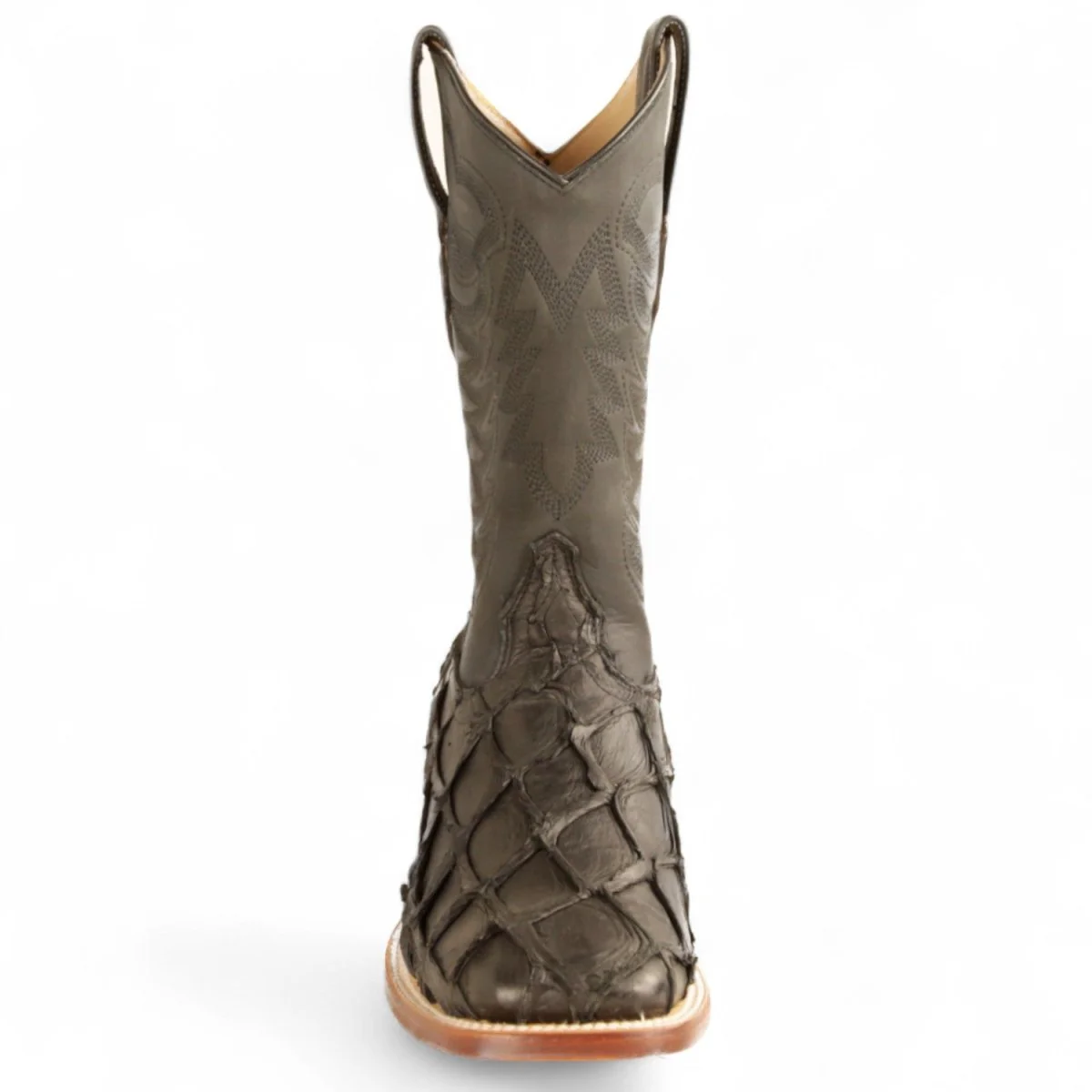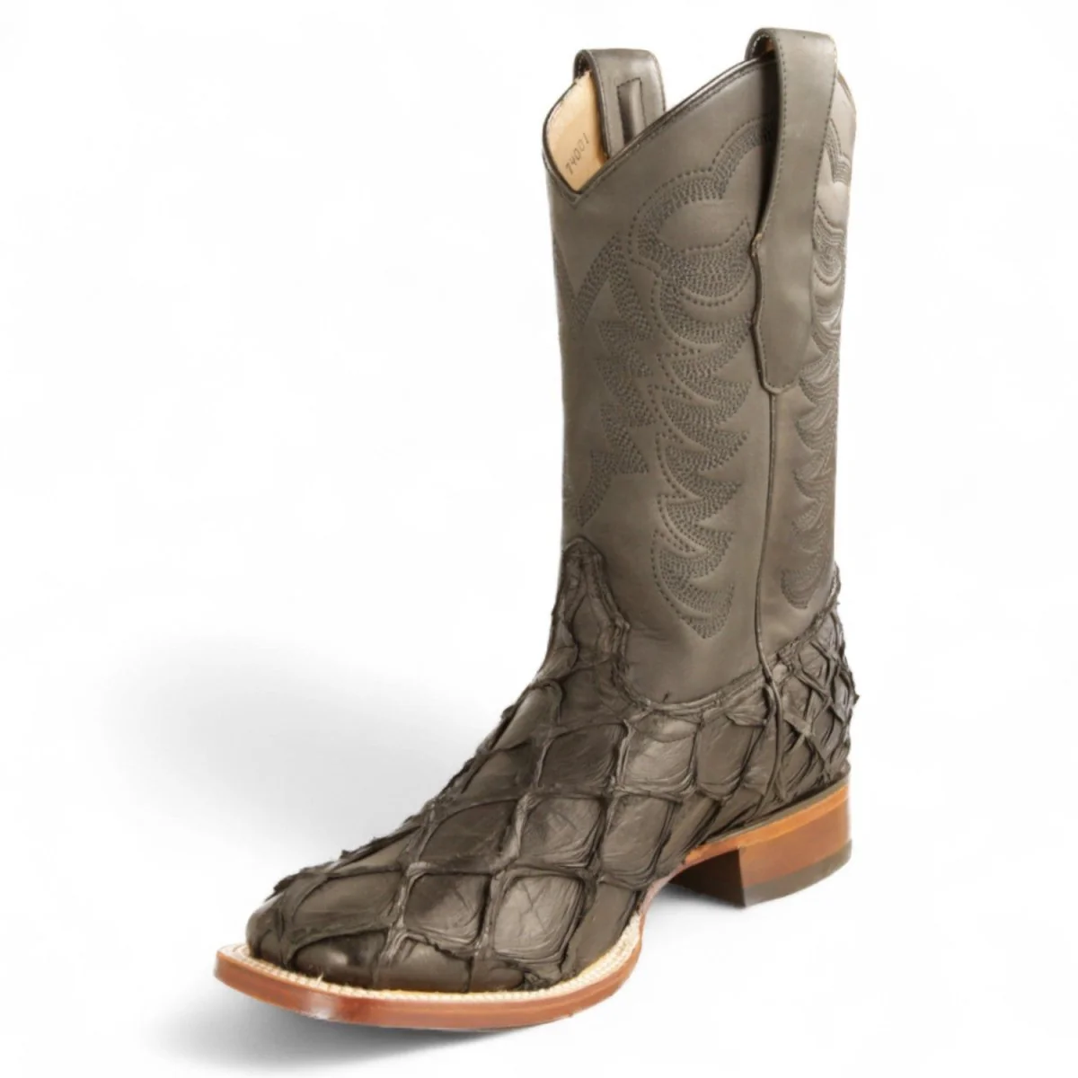 Botas de Pescado Pirarucu Original Punta Rodeo Cuadrada Ancha Color Negro