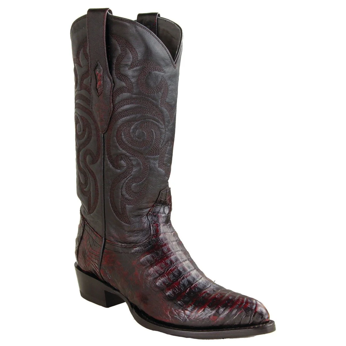 Botas de Piel de Cocodrilo Caiman Panza Horma Puntal Color Negro Rojizo