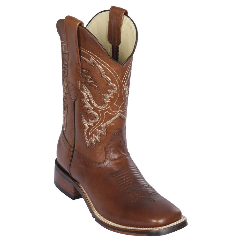 Botas de Piel Original Punta Rodeo Cuadrada Ancha Color Cafe