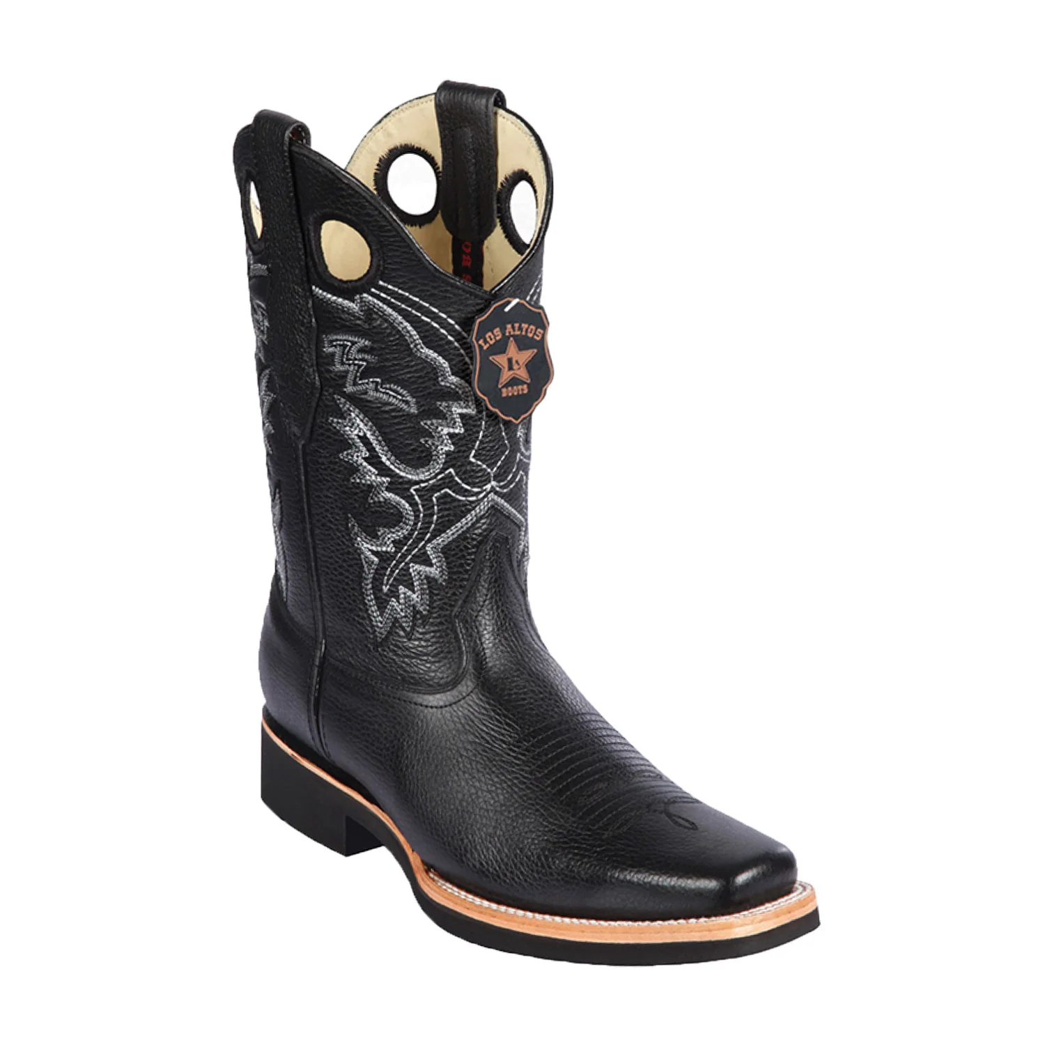 Botas de Piel Original Punta Rodeo Cuadrada Ancha Color Negro – Los Altos Boots