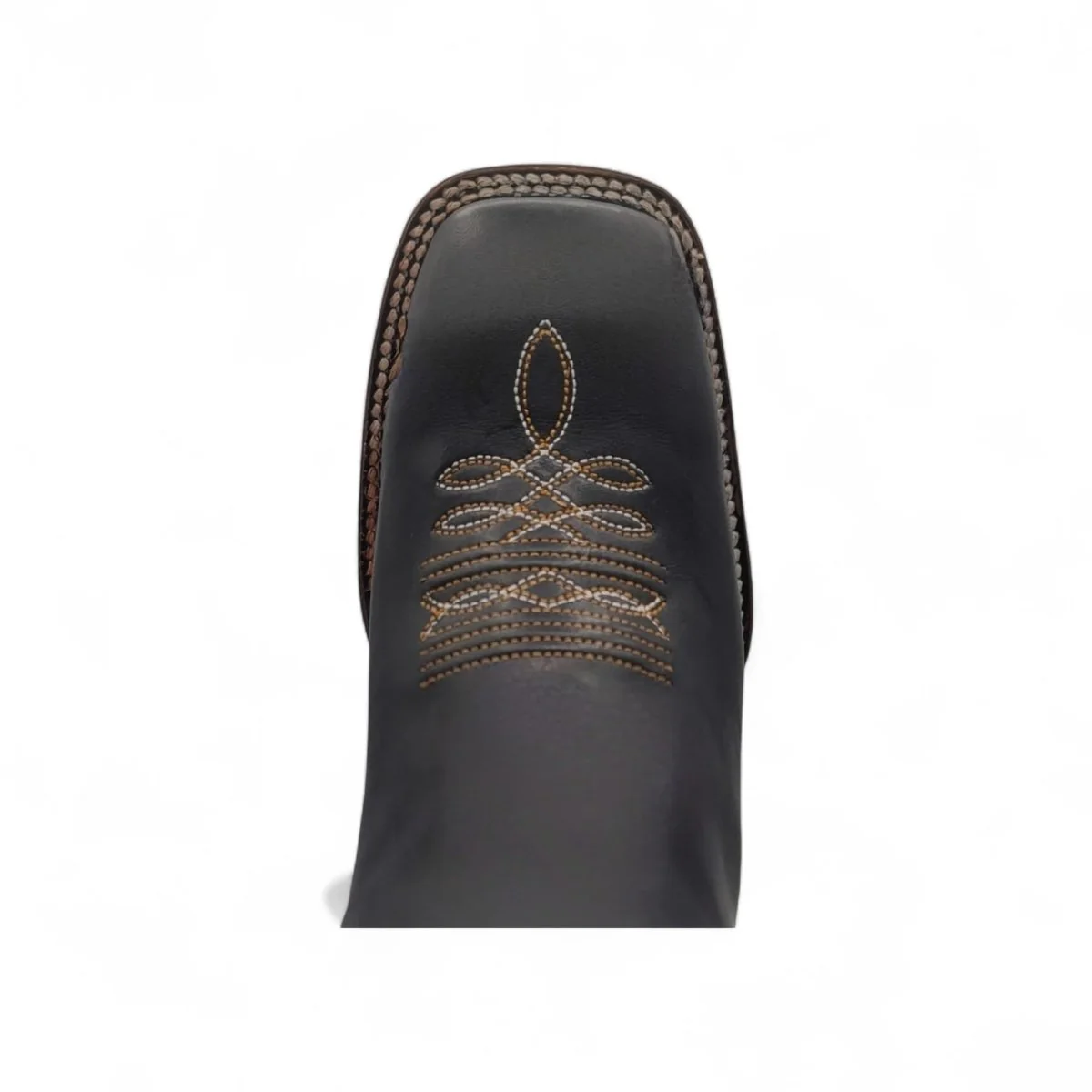 Botin Vaquero para Hombre de Piel Grasso Color Negro con Punta Cuadrada y Suela de Cuero – Hooch Boots H42P2205