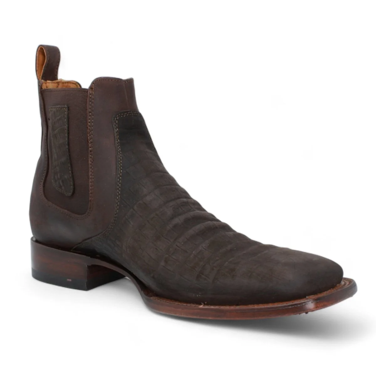 Caiman Belly Print Square Toe Ankle Boots – Chocolate