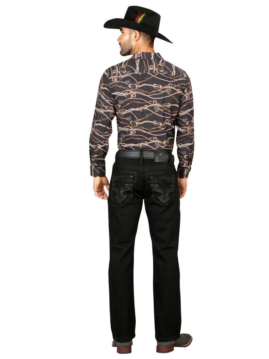 Upgrade your wardrobe with these Centenario Men’s Black Boot Cut Jeans, featuring stylish dark embroidery on the back pockets. Made from high-quality black denim, these jeans offer a comfortable, durable fit with a flattering boot cut that pairs perfectly with boots or casual shoes. The embroidered details add a unique, modern touch while maintaining a classic and versatile look.