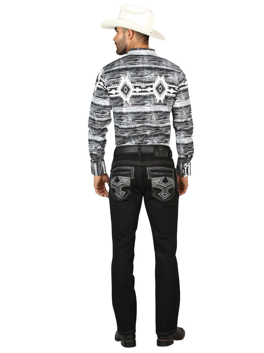 Upgrade your wardrobe with these Centenario Men’s Black Boot Cut Jeans, featuring stylish dark gray and light gray embroidery on the back pockets. Made from high-quality black denim, these jeans offer a comfortable, durable fit with a flattering boot cut that pairs perfectly with boots or casual shoes. The embroidered details add a unique, modern touch while maintaining a classic and versatile look.