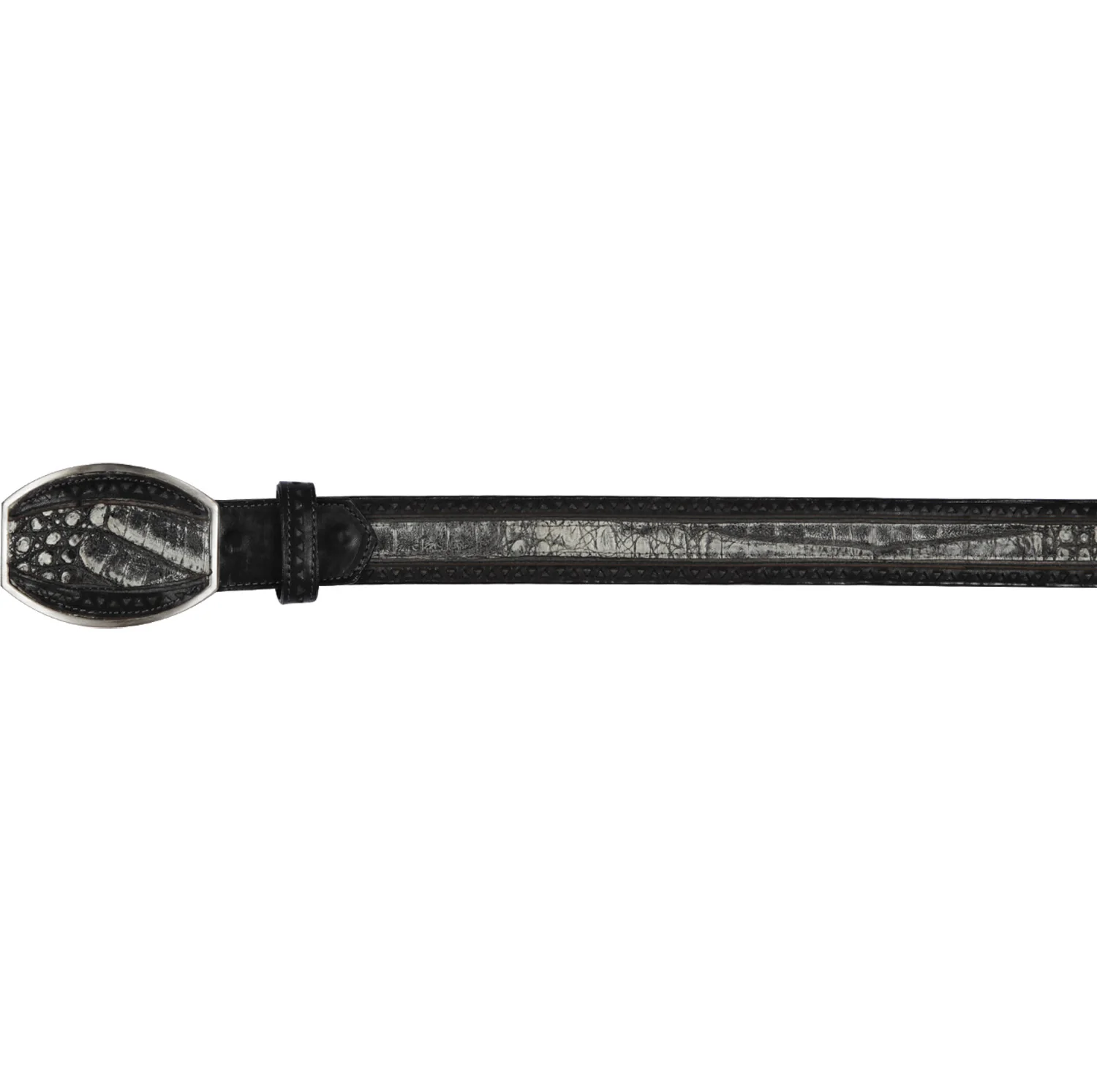 Cinto Casual de Cocodrilo Caiman Panza Original Color Negro Sahara