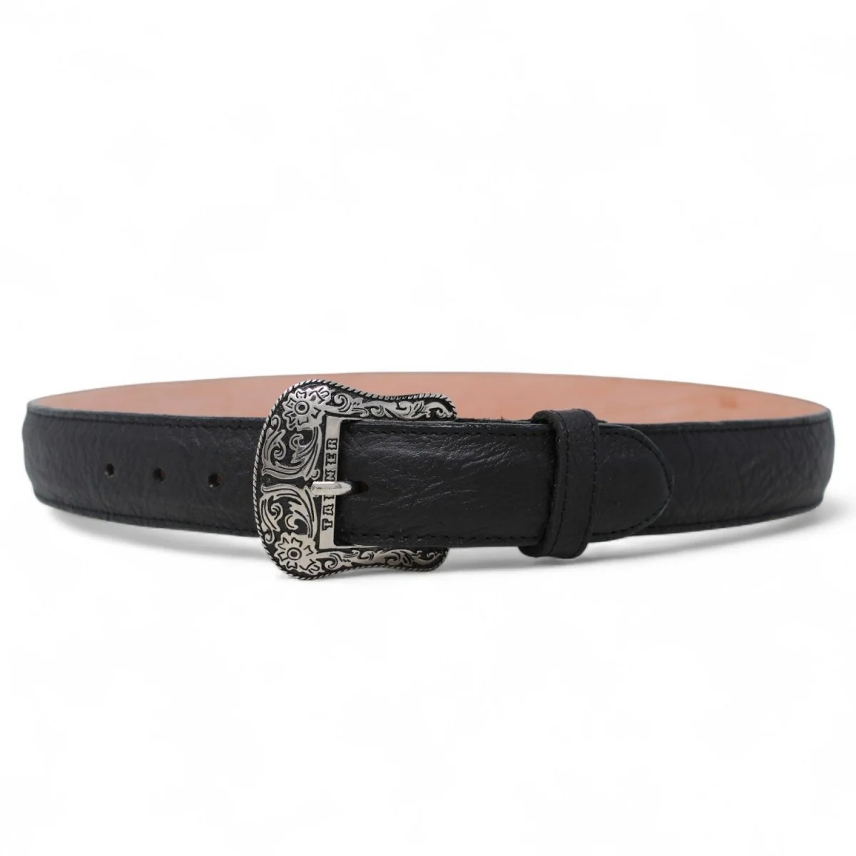 La pieza destaca por su hebilla metálica estilo Texas, finamente grabada con detalles florales que añaden un toque clásico y sofisticado. Durable, cómodo y perfecto para combinar con jeans, botas o atuendos casuales.