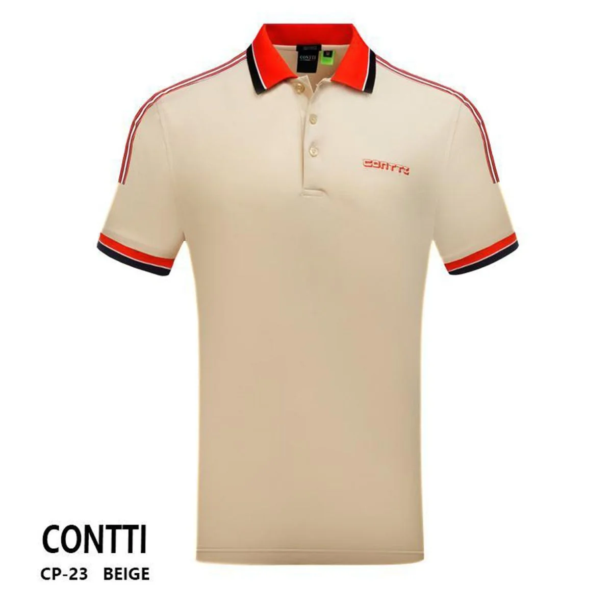 CONTTI Men’s Cotton Contrast Stripes Logo Polo Shirt
