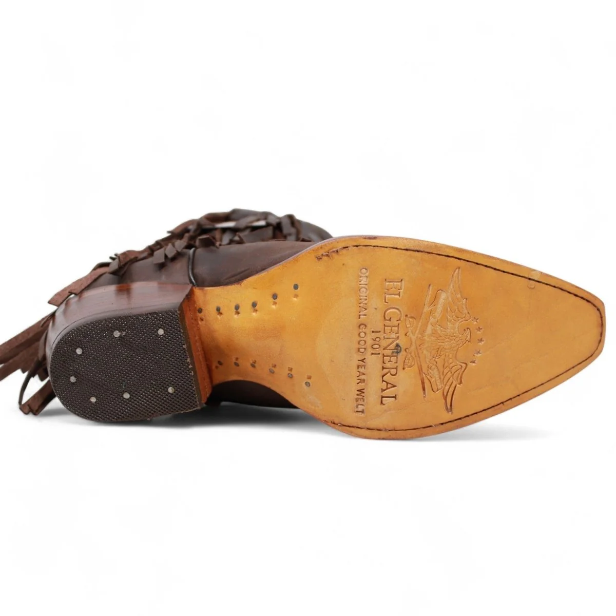 Step into authentic western style with the El General Women’s Western Boots, crafted in Mexico from premium materials. Featuring stylish fringe detailing, a comfortable Cuban heel, and a durable leather sole, these boots offer a classic cowboy-inspired look that elevates any outfit. Perfect for rodeos, special events, or everyday western fashion.