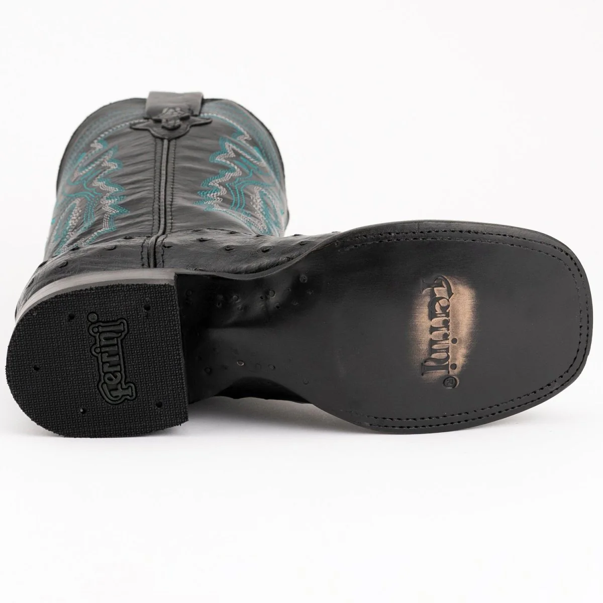 Ferrini Men’s Colt Full Quill Ostrich Square Toe Boots Handcrafted – Black 1019304