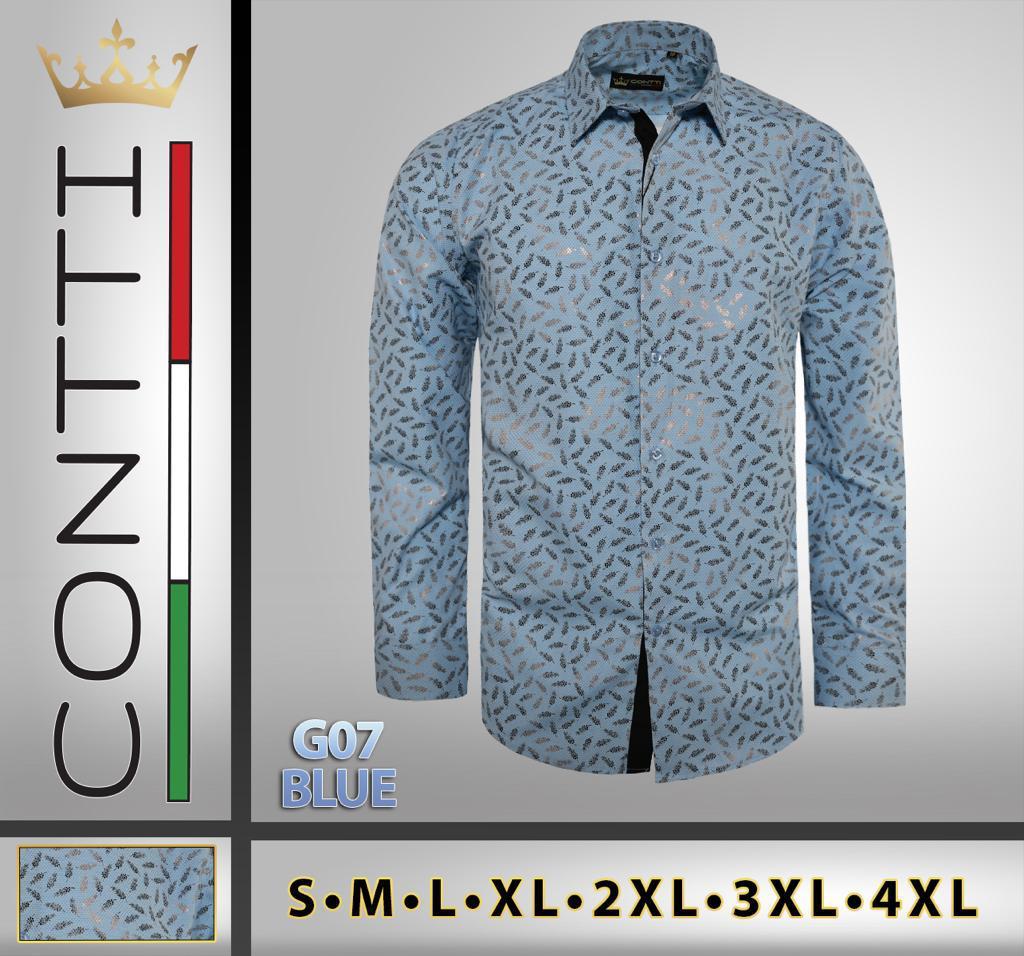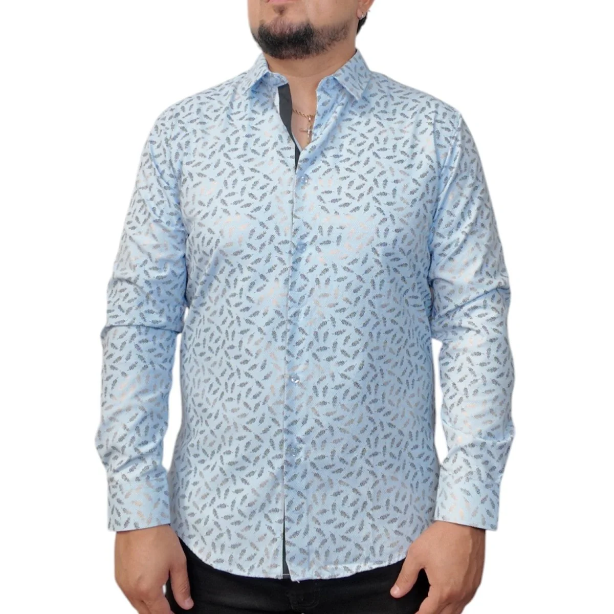 Men’s fashion Button Down Blue Shirt with Silver Feather