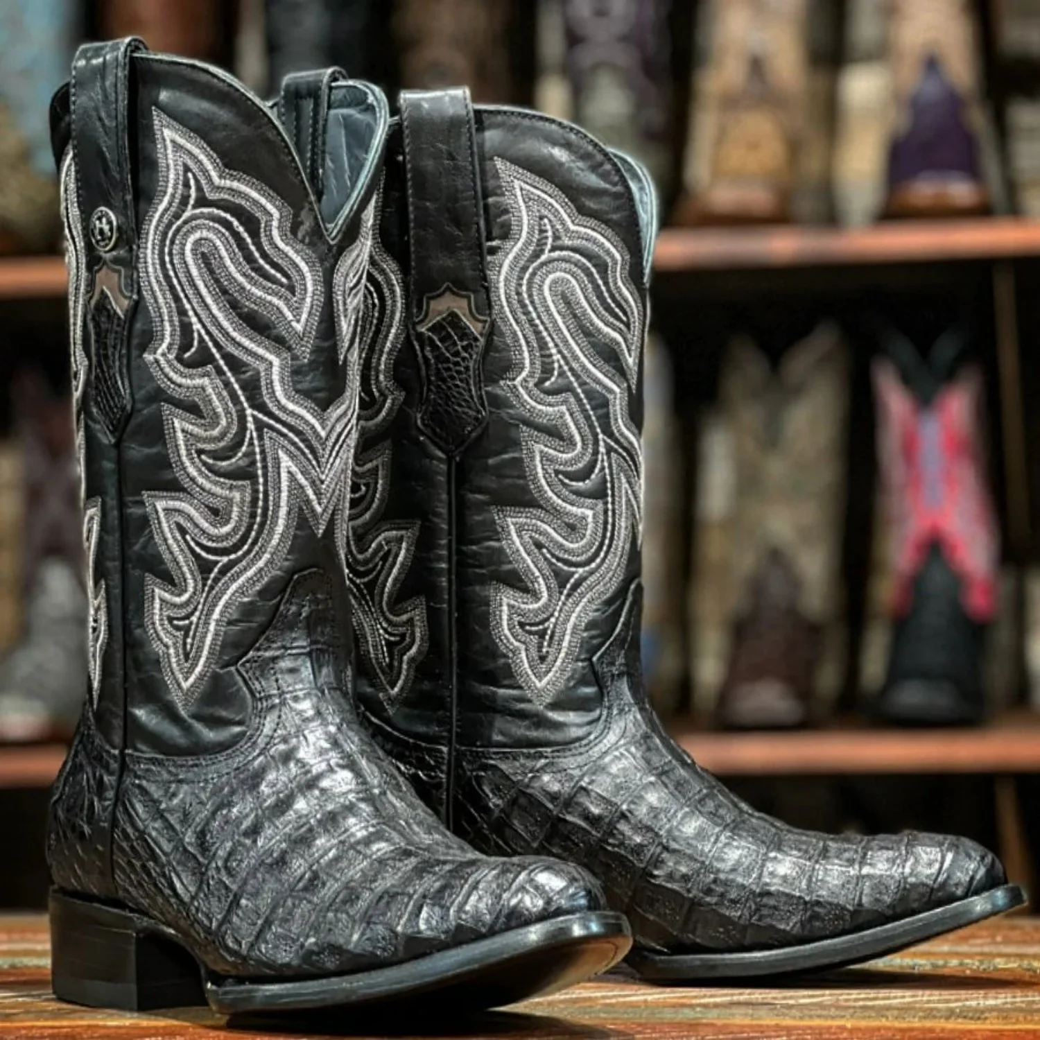- Vamp: Genuine Caiman Belly Leather