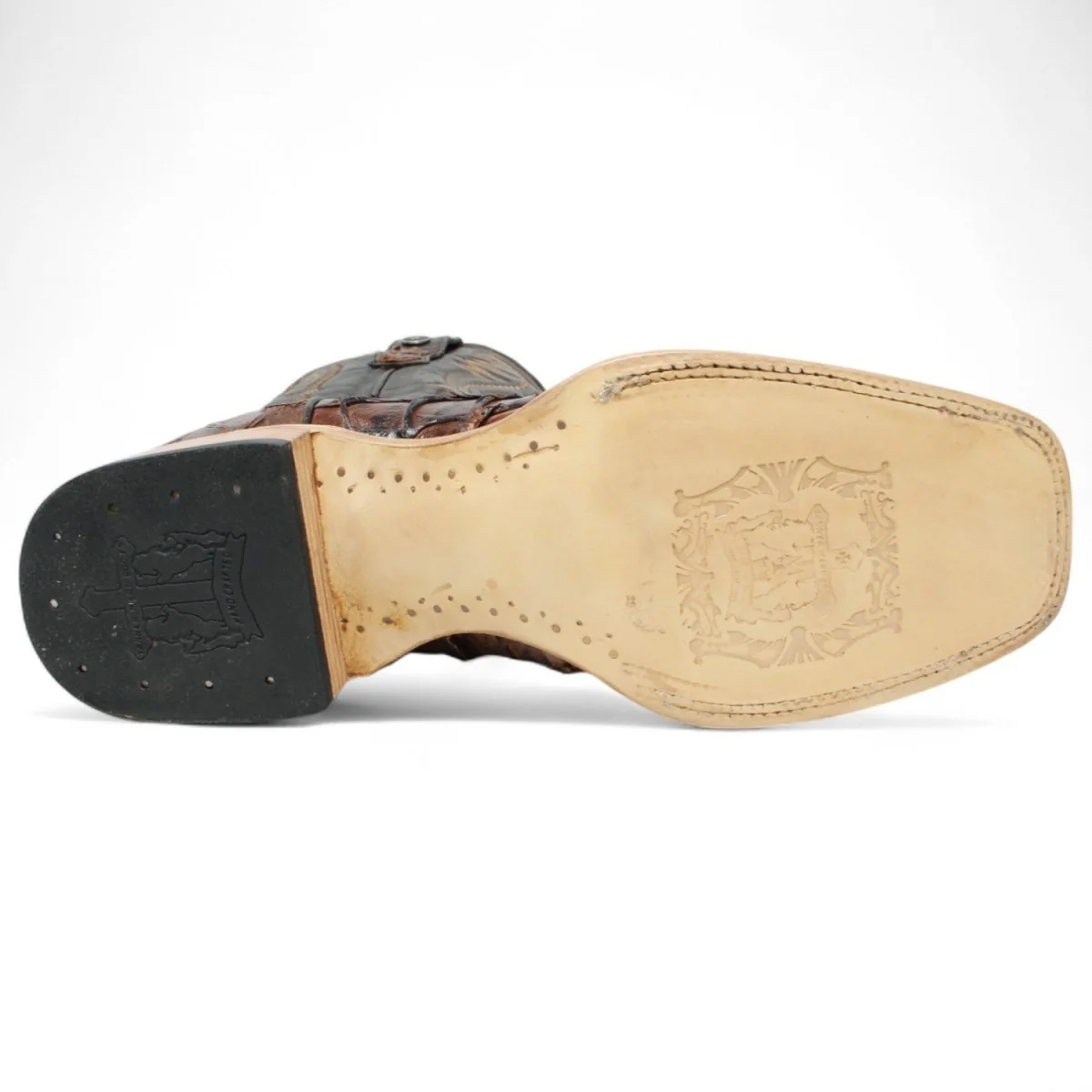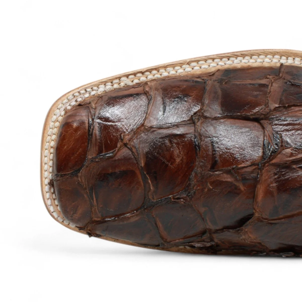 Tanner Mark Men’s Genuine Monster Fish Leather Square Toe Boots Chocolate TMX201307