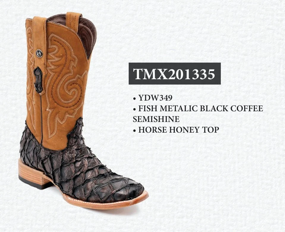 Tanner Mark Men’s Genuine Monster Fish Square Toe Boots Black Coffee TMX201335