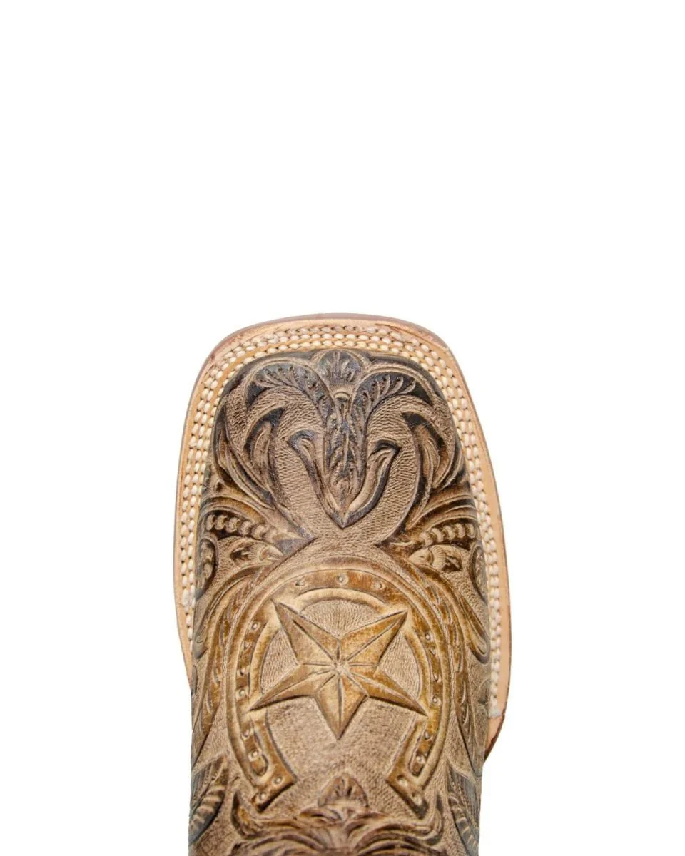 Tanner Mark Men’s Hand Tooled Square Toe Boots Mocha TM205550