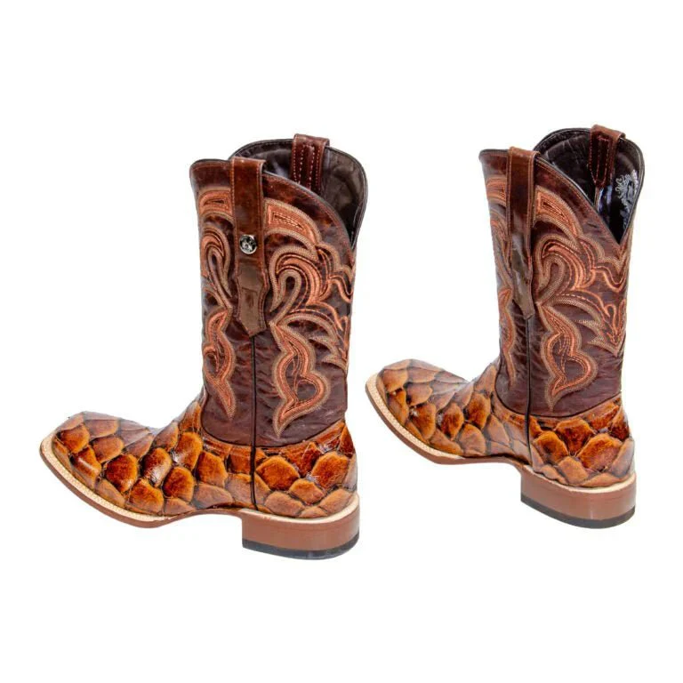 Tanner Mark Men’s Print Monster Fish Square Toe Boots Cognac TM201715