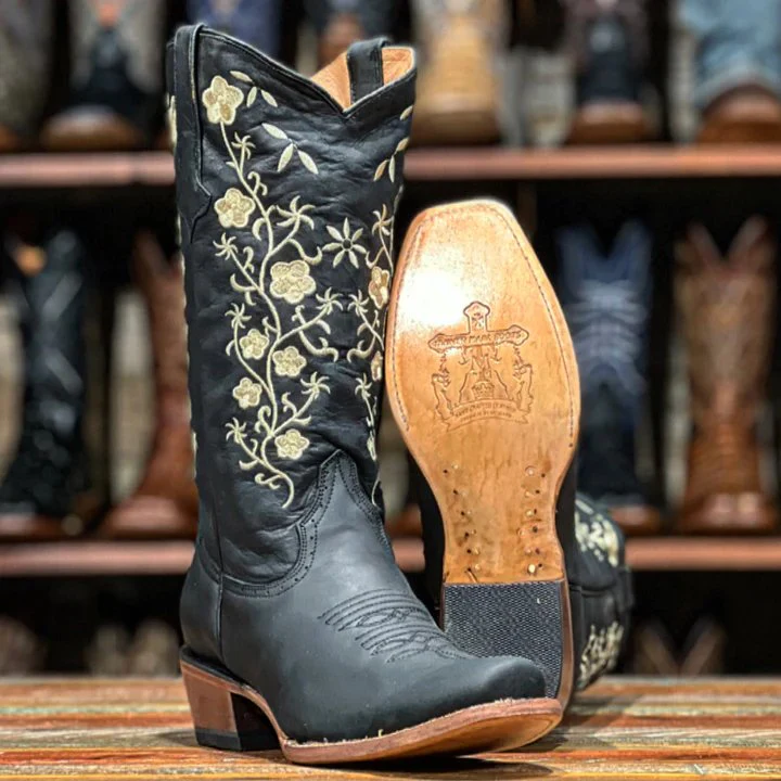 - Top: Vintage Black with Embroidered Daisy Pattern