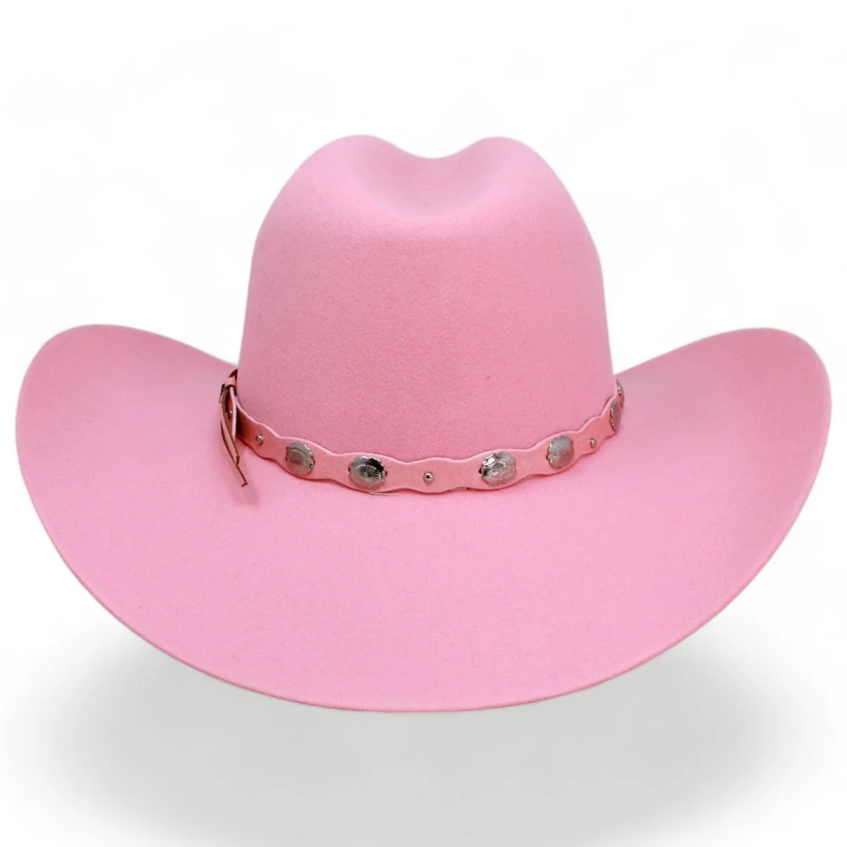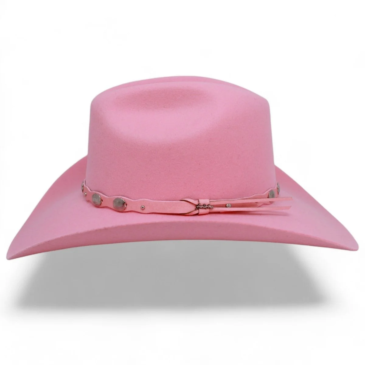Sombrero Tombstone Denver confeccionado a mano en fina lana de borrego (20X). Su diseño en color rosa destaca por su estilo auténtico y elegante, con una copa de 4 ¼» y un ala de 3 ½», ofreciendo un balance perfecto entre tradición vaquera y comodidad ligera.