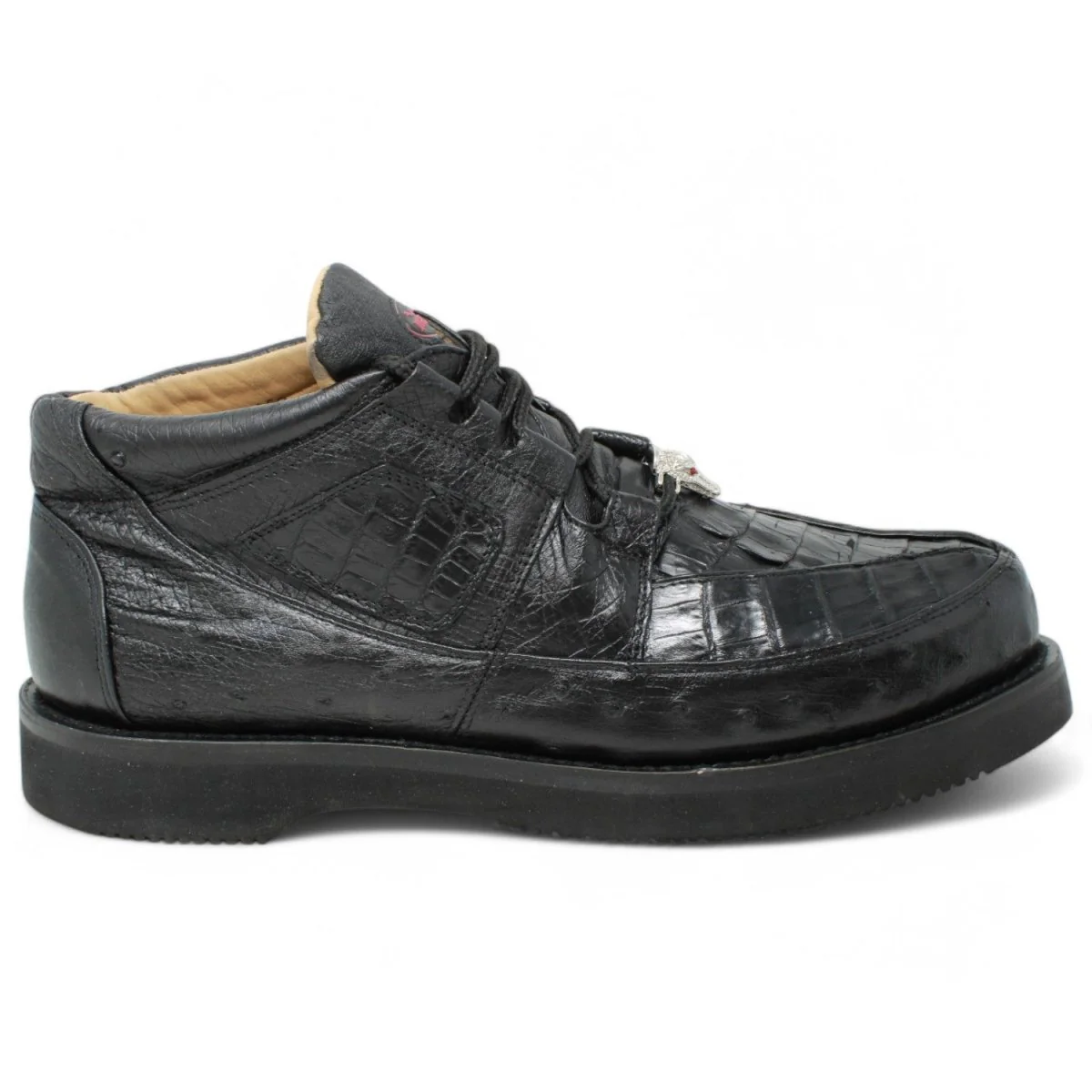 Zapatos Casuales de Cocodrilo Caiman con Avestruz Original Color Negro